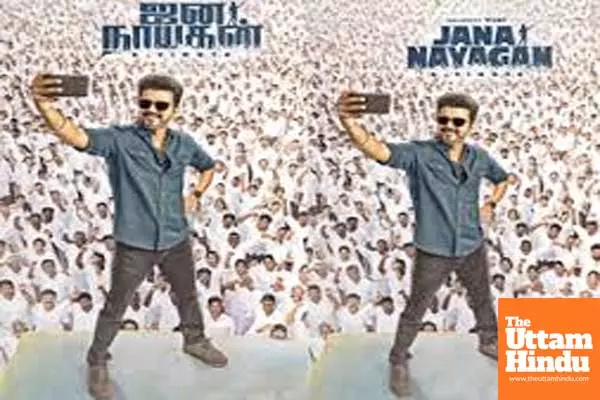 Mumbai (The Uttam Hindu) : Thalapathy Vijay's last project Thalapathy 69 has now received an official title. H. Vinoth's directorial has been named “Jana Nayagan”. Not just that, the makers have also unveiled the first-look poster from the highly-anticipated drama. Capturing the essence of "Jana Nayagan", the first look poster features Thalapathy Vijay standing confidently on an elevated platform, taking a selfie with an electrified crowd of supporters.