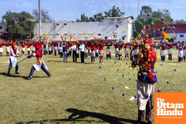 Caption : Amritsar: Students participate in a rehearsal for the upcoming Republic Day celebrations at Guru Nanak Stadium in Amritsar on Tuesday, January 21, 2025.