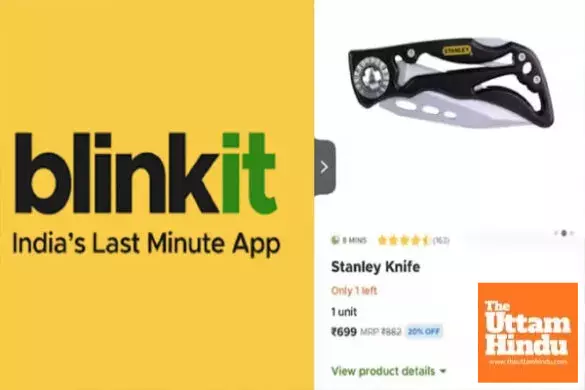 New Delhi (The Uttam Hindu): Online grocery and quick delivery platform Blinkit has landed in a major legal trouble. Delhi Police has taken strict action against the company, confiscating 50 illegal button knives and registering an FIR. This entire action has been taken after investigating two separate murder cases in the capital's Khyala area. Police investigation has revealed the shocking fact that the knives used in the murders were purchased from the online platform Blinkit itself. Following this revelation, Delhi Police has issued a notice to Blinkit for questioning and other delivery apps have also come under the police radar.