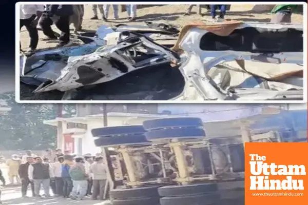 Saharanpur (The Uttam Hindu): A heartbreaking road accident in Uttar Pradesh’s Saharanpur on Friday morning shocked the entire district. In the Gagalhedi police station area, a high-speed dumper lost control and overturned onto a car, crushing it completely. All seven occupants belonging to the same family died on the spot. Among the victims was a young child.
