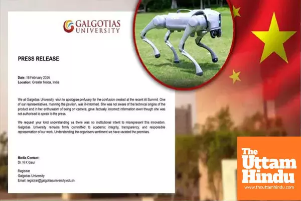 New Delhi (The Uttam Hindu): Galgotias University faced major international embarrassment during the AI Impact Summit held in Delhi after its representatives falsely claimed a Chinese-made robot as an in-house innovation. Following widespread criticism and objections from organisers, the university issued a public apology and withdrew its pavilion from the summit.
