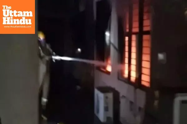 Lucknow (The Uttam Hindu): A late-night fire at the Bank of Baroda branch inside the Shakuntala Mishra University campus on Mohan Road created panic on Tuesday. Flames and smoke suddenly rising in the quiet of the night were noticed by nearby people, who immediately informed the fire station. Within minutes, a team from Alam Bagh Fire Station reached the spot and started the rescue operation.