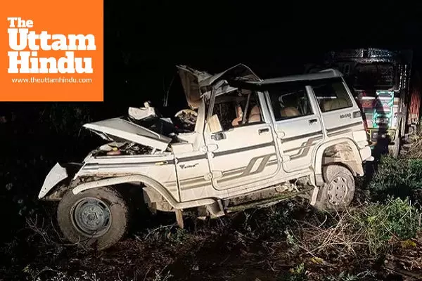 Agra (The Uttam Hindu): A devastating road accident took place late Thursday night near Pai village under Chitrahat police station area, where a Bolero carrying devotees returning from Kaila Devi temple crashed into a roadside tree. Five members of the same family lost their lives, while four others sustained serious injuries.