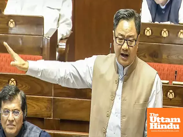 New Delhi (The Uttam Hindu): Union Parliamentary Affairs Minister Kiren Rijiju on Wednesday leveled a serious allegation against the Congress party. He claimed that Congress MPs behaved rudely with Lok Sabha Speaker Om Birla. Rijiju stated that he was present at the scene when the incident occurred.