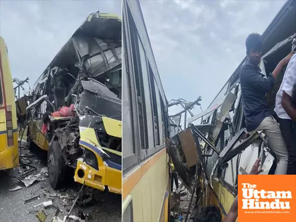 Sivaganga (Uttam Hindu News): A horrific road accident occurred in Tamil Nadu's Sivaganga district on Saturday. Eight people were killed and several other passengers were seriously injured in a head-on collision between two buses near Tirupattur.