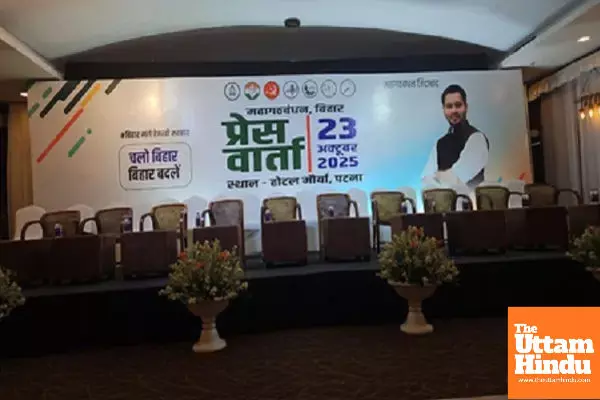 The press conference at Maurya Hotel, Patna, has intensified speculation. The banner prominently displays the election symbols of all Mahagathbandhan allies, but features only a large photo of Tejashwi Yadav, with Rahul Gandhi’s picture notably absent, creating political buzz. The banner also carries the hashtag #BiharMangeTejashwiSarkar.