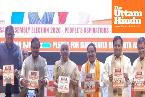 Dispur (The Uttam Hindu): The Bharatiya Janata Party on Tuesday released its election manifesto for the upcoming Assam Assembly elections, presenting it as a “Sankalp Patra.” The announcement was made at the party’s state office in Guwahati in the presence of Nirmala Sitharaman, Himanta Biswa Sarma, and state president Dilip Saikia.