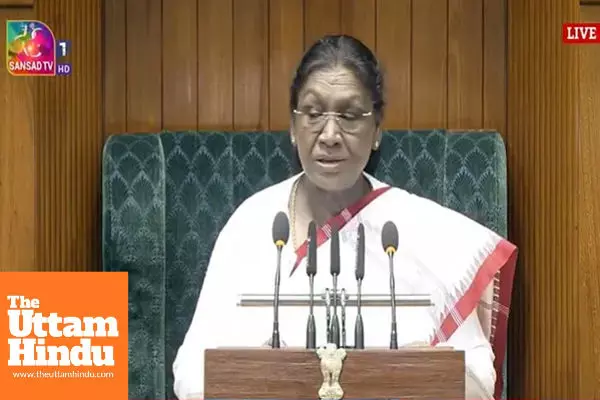New Delhi (The Uttam Hindu): President Droupadi Murmu on Wednesday addressed the joint sitting of both Houses of Parliament, marking the beginning of the Budget Session. In her address, the President highlighted the country’s key achievements and presented a vision for India’s future.