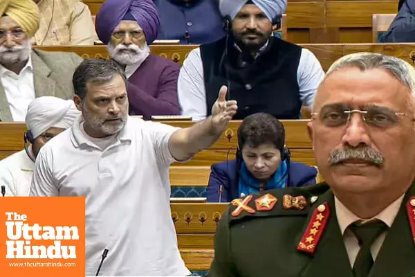 New Delhi (The Uttam Hindu): Congress leader Rahul Gandhi has launched a sharp attack on the central government over the FIR registered into the alleged circulation of former Army chief General M.M. Naravane’s unpublished book. Presenting an old social media post of General Naravane before the media, Rahul Gandhi questioned the stand taken by the government and the publisher.