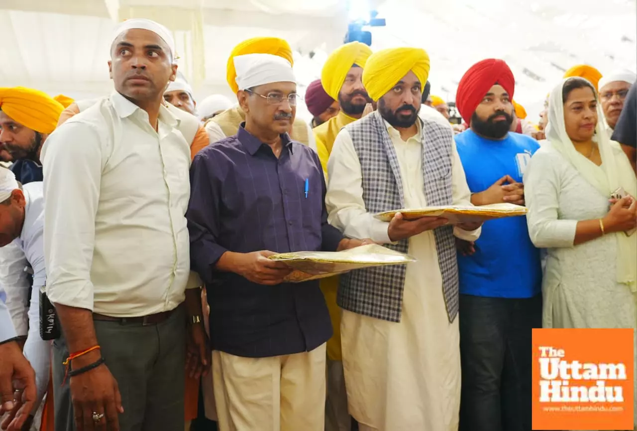New Delhi/ Chandigarh (The Uttam Hindu): Punjab Chief Minister Bhagwant Singh Mann and National Convener of Aam Aadmi Party Arvind Kejriwal on Saturday participated in a kirtan