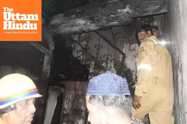 Meerut (The Uttam Hindu): A devastating fire broke out late Monday night in a three-storey house belonging to a cloth trader in the Lisadi Gate police station area of Kidwai Nagar Islamabad. Six members of the same family, including five children and a woman, lost their lives after being trapped in flames and smoke. Two others sustained serious burn injuries. Initial investigation suggests that the fire may have been caused by a short circuit.