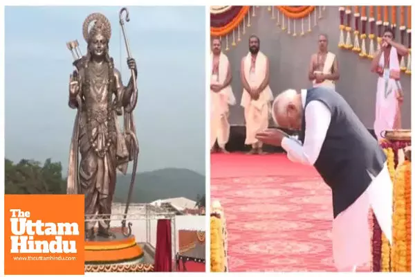 Panaji (The Uttam Hindu): Prime Minister Narendra Modi on Friday unveiled the world’s tallest statue of Lord Ram at the historic Shri Sansthan Gokarn Jeevottam Math in South Goa. The bronze statue stands 77 feet tall, making it the largest idol of Lord Ram ever installed. The statue has been created by renowned sculptor Ram Sutar, who is also credited with designing the world’s tallest statue, the Statue of Unity in Gujarat.