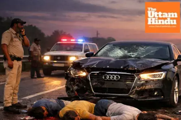Rewa (The Uttam Hindu): A heartbreaking road accident occurred Saturday evening in Madhya Pradesh's Rewa district, turning a happy home into mourning. A speeding luxury Audi car struck two bike riders. The accident was so severe that three people on the bike died on the spot. According to police, the deceased included a father and son who had gone to distribute wedding invitations.