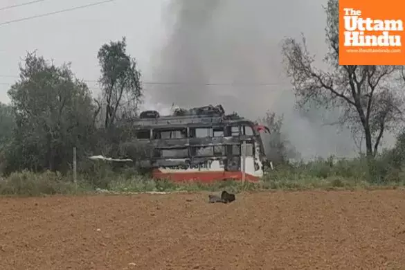 Jaipur (The Uttam Hindu): A tragic accident occurred on Tuesday in Todi village, located in the Manoharpur police station area of Jaipur. A bus full of laborers came in contact with a high-tension line, causing electric current to spread through the bus and causing a fire. Two laborers died on the spot, while about a dozen others were burned.