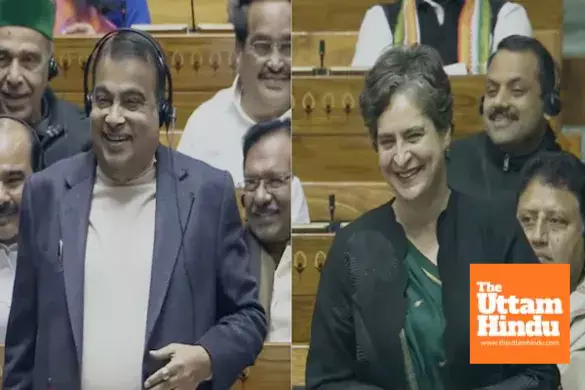 New Delhi (The Uttam Hindu) – During Question Hour in the Lok Sabha today, an interesting and cordial exchange took place between Congress MP Priyanka Gandhi and Union Road Transport and Highways Minister Nitin Gadkari. Priyanka Gandhi said that she had been requesting time from the minister since June to discuss issues related to her Lok Sabha constituency. To this, Nitin Gadkari smilingly replied, "Come after Question Hour, or at any time."