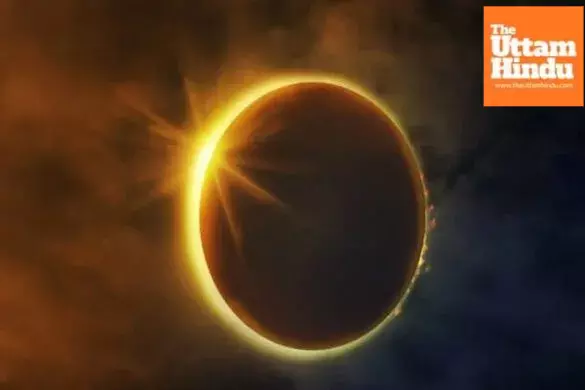 New Delhi (The Uttam Hindu): Today is the new moon day of the month of Phalgun. Devotees are bathing, donating, and performing puja on the occasion. It is also a special day from an astronomical perspective, as an annular solar eclipse is taking place. This type of eclipse is known as the "Ring of Fire" in scientific parlance. During this eclipse, the moon will cover approximately 96 percent of the sun.