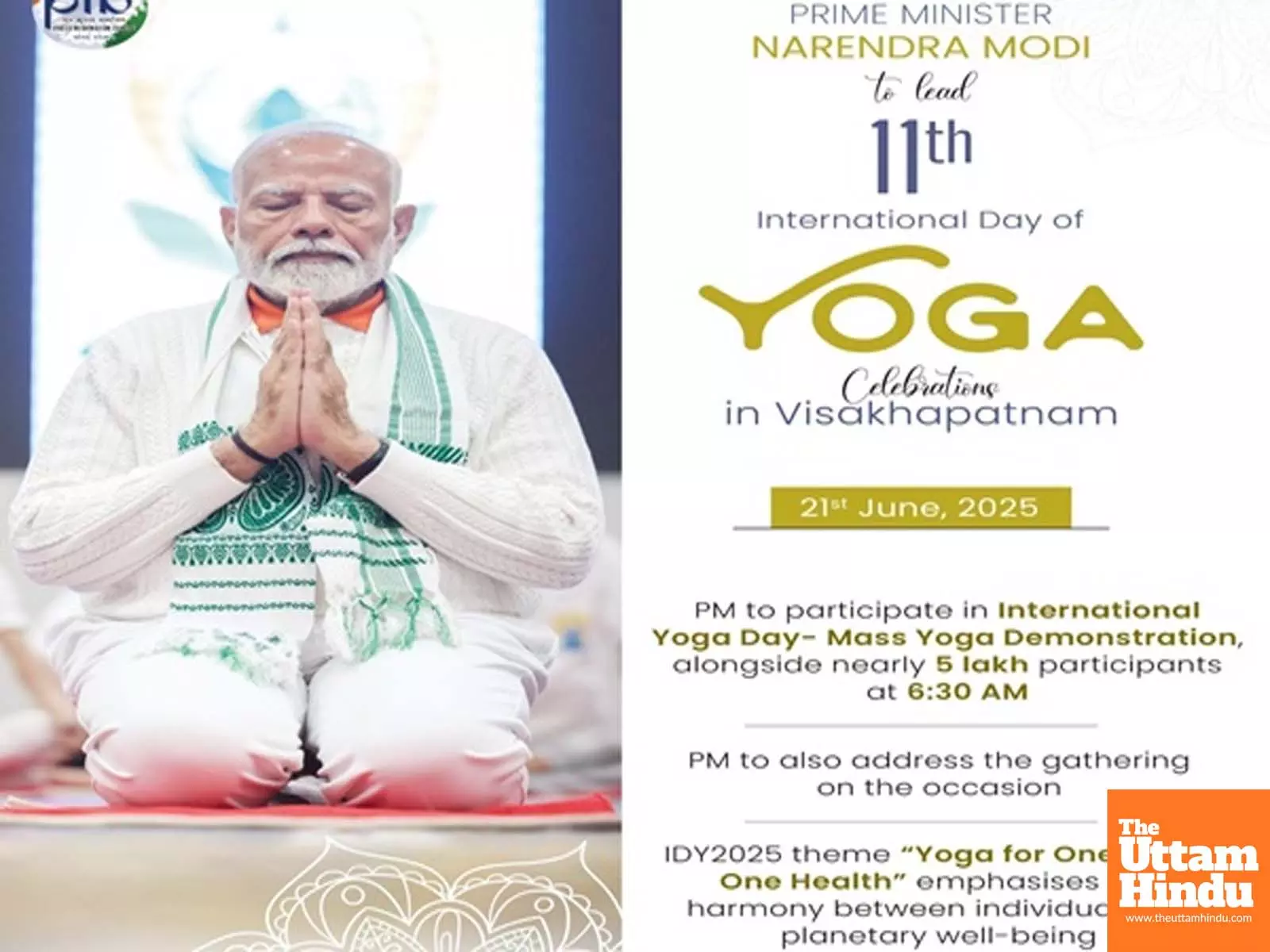 New Delhi (The Uttam Hindu): Prime Minister Narendra Modi will lead the nation in celebrating the 11th International Day of Yoga (IDY) from the coastal city of Visakhapatnam, Andhra Pradesh on Saturday morning.