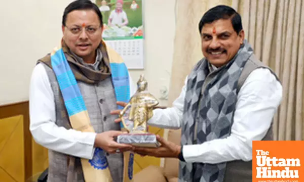 Caption : Bhopal: Uttarakhand Chief Minister Pushkar Singh Dhami meets Madhya Pradesh Chief Minister Mohan Yadav in Bhopal on Monday, December 23, 2024.