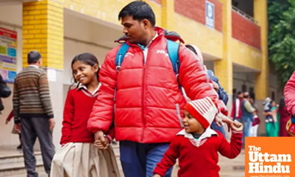 Caption : New Delhi: Students with their guardian leave after attending a Mega PTM organized at a government school in Kalkaji, New Delhi, on Saturday, December 28, 2024.