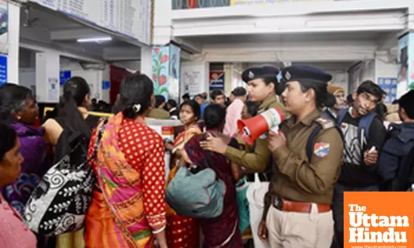 RPF personnel attempt to control a massive crowd at Hatia Railway Station