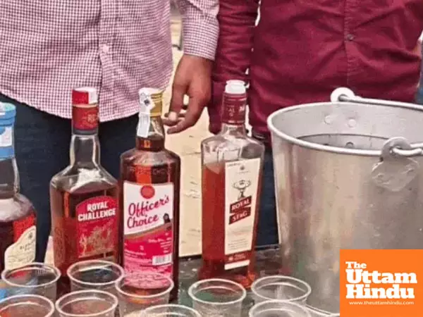 Kotkapura (The Uttam Hindu): On the sacred occasion of Chaitra Navratri in Kotkapura, Punjab, a scene that might surprise the common people was witnessed. A liquor langar was set up at the Baba Kala Maher memorial fair in the village of Marhana. Benches were placed outside the temple, displaying bottles of Indian and foreign liquor. Devotees were seen making drinks on the tables and distributing and serving liquor to people as prasad.