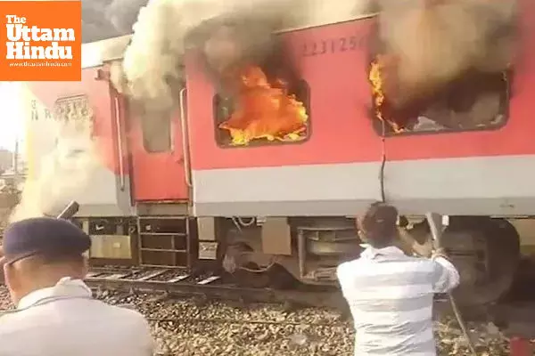 Sirhind (The Uttam Hindu): A major mishap was averted on Friday morning when a coach of the Amritsar–Saharsa Garib Rath Express (Train No. 12204) caught fire at Sirhind Railway Station in Punjab. The incident took place around 7:30 a.m., after which the railway staff immediately swung into action and safely evacuated all passengers from the affected coach.