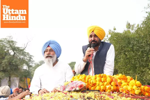 Tarn Taran (The Uttam Hindu): Aam Aadmi Party (AAP) candidate Harmeet Singh Sandhu received an overwhelming response during Chief Minister Bhagwant Mann’s grand roadshow in Tarn Taran on Monday. The roadshow covered a dozen villages, where people welcomed the Chief Minister and the AAP candidate with great enthusiasm, flower showers, and slogans of support.
