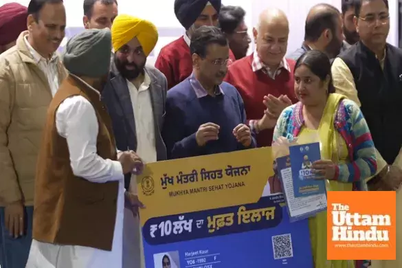 Mohali (The Uttam Hindu) – There is significant news of relief for the people of Punjab regarding healthcare services. Starting today, free treatment up to ₹10 lakh will be available in the state. Chief Minister Bhagwant Mann and Aam Aadmi Party National Convenor Arvind Kejriwal formally launched the Chief Minister's Health Insurance Scheme in Mohali.