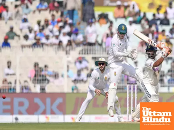 The Indian team has taken the lead against visiting South Africa in the first Test match being played at Eden Gardens.