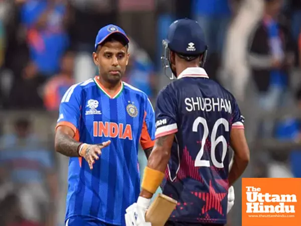 New Delhi (The Uttam Hindu): India started the ICC Men's T20 World Cup on a winning note, defeating the USA by 29 runs at the Wankhede Stadium on Saturday. However, the victory wasn't easy for India, and the team appeared to be in trouble for some time during the match. Captain Suryakumar Yadav's brilliant unbeaten 84 and last-minute replacement Mohammed Siraj's excellent bowling (3/29) helped India win their first match of the domestic tournament.