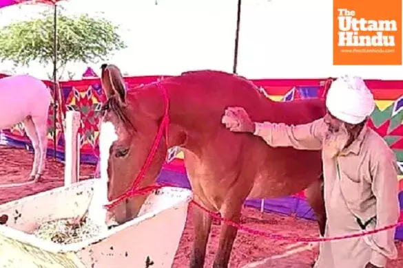 Ajmer (The Uttam Hindu): The 2025 International Pushkar Fair has begun in Pushkar, located in Rajasthan's Ajmer district, and will continue until November 5th. People from far and wide bring their animals to the fair, where they are exhibited. This time, the most talked-about Marwari mare, "Nagina," valued at ₹1 crore, is gaining attention for its unique gait and price.