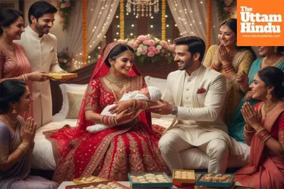 Rampur (The Uttam Hindu): A shocking yet happy ending has emerged from the Rampur district of Uttar Pradesh. The bride suddenly experienced abdominal pain on her wedding night, and by morning, the house was filled with cries of joy. The bride gave birth to a healthy baby girl on the very first night of the wedding. Usually, such cases cause chaos in the in-laws' home, but here the situation was the opposite. Upon receiving the news of becoming a father, the groom distributed sweets throughout the village in joy.