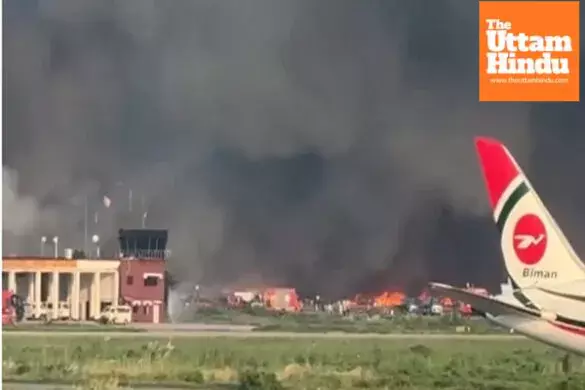 Dhaka (The Uttam Hindu): Panic gripped Hazrat Shahjalal International Airport in Dhaka, the capital of Bangladesh, on Saturday afternoon when a massive fire broke out in the airport's cargo terminal. Due to the severity of the fire, all flight operations from the airport have been temporarily suspended.