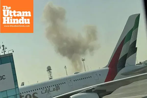 New Delhi (The Uttam Hindu): A suspected Iranian drone attack near Dubai International Airport on Monday triggered a massive fire in a fuel tank, creating panic in the surrounding area. Flames and thick smoke were visible from a long distance. Civil defense and emergency teams rushed to the scene and managed to bring the fire under control after extensive efforts. Authorities said the situation is now fully under control.