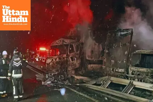 The police further stated that more than a dozen vehicles caught fire following the collisions. Several vehicles were completely reduced to ashes. Firefighters took nearly seven hours to bring the blaze under control, and all belongings inside the vehicles were destroyed in the fire.