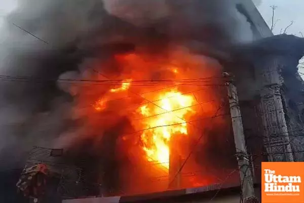 Giridih (The Uttam Hindu): A huge fire broke out in a large clothes shop in Panchamba area of Giridih city of Jharkhand. A woman and a child are trapped in the flames, efforts are being made to rescue them. This shop named "Khushi Mart" is located in a three-storey building in Marwari Mohalla. The shop runs on the lower floor, while the shop owner Dinesh Dalmia and his family members live on the upper two floors.