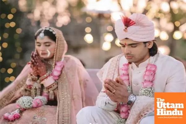 Sonipat (The Uttam Hindu): Neeraj Chopra, the star athlete who has brought pride to the nation by winning two Olympic medals in javelin throw, tied the knot today with international tennis player Himani Mor from Ladsauli village, Sonipat. The couple shared the joyous news of their wedding on social media.