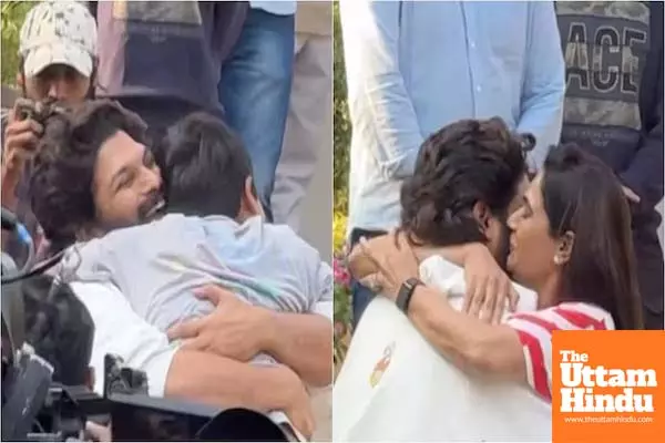 Mumbai (The Uttam Hindu): Allu Arjun arrived at his home after being released from Chanchalguda jail on Saturday morning. His kids and wife Sneha Reddy hugged him on seeing him. In a video going viral on social media, Allu Arjun is seen entering his home and his family members welcoming him. In the clip, the actor's kids are seen running towards him and hugging their father lovingly. 'Pushpa's' wife Sneha Reddy was seen standing nearby and she immediately hugged Arjun as soon as he came near her.