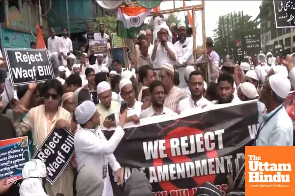 New Delhi (The Uttam Hindu): After the passing of the Wakf Amendment Bill from both houses of the Parliament, on one hand the political atmosphere is heated and on the other hand Muslims have come out on the streets in protest against this bill. BJP and its allies have called it in the interest of poor Muslims, while opposition parties have called it an attack on the Constitution and have talked about going to the Supreme Court. After the bill was passed, protests are being held in many cities of the country including Kolkata, Ahmedabad. Protests are being held by Joint Forum for Waqf Protection in Park Circus, Kolkata. A large number of Muslim people have come on the streets. The banner of We Reject Bill is also seen with the protesters. Apart from this, widespread protests are also being held in Ahmedabad against the bill. People are saying that they will give up their lives but will not accept the amendment.