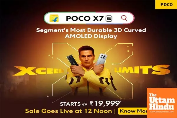 New Delhi (The Uttam Hindu): POCO, one of India’s leading consumer technology brands, on Friday launched its latest powerhouse POCO X7 5G. The POCO X7 5G is designed for people who demand durability, performance, and value. The X7 5G is now available on Flipkart starting today at 12 noon. Exciting first-sale offers include a starting price of Rs 19,999, inclusive of a Rs 2,000 coupon discount, only for the first day.