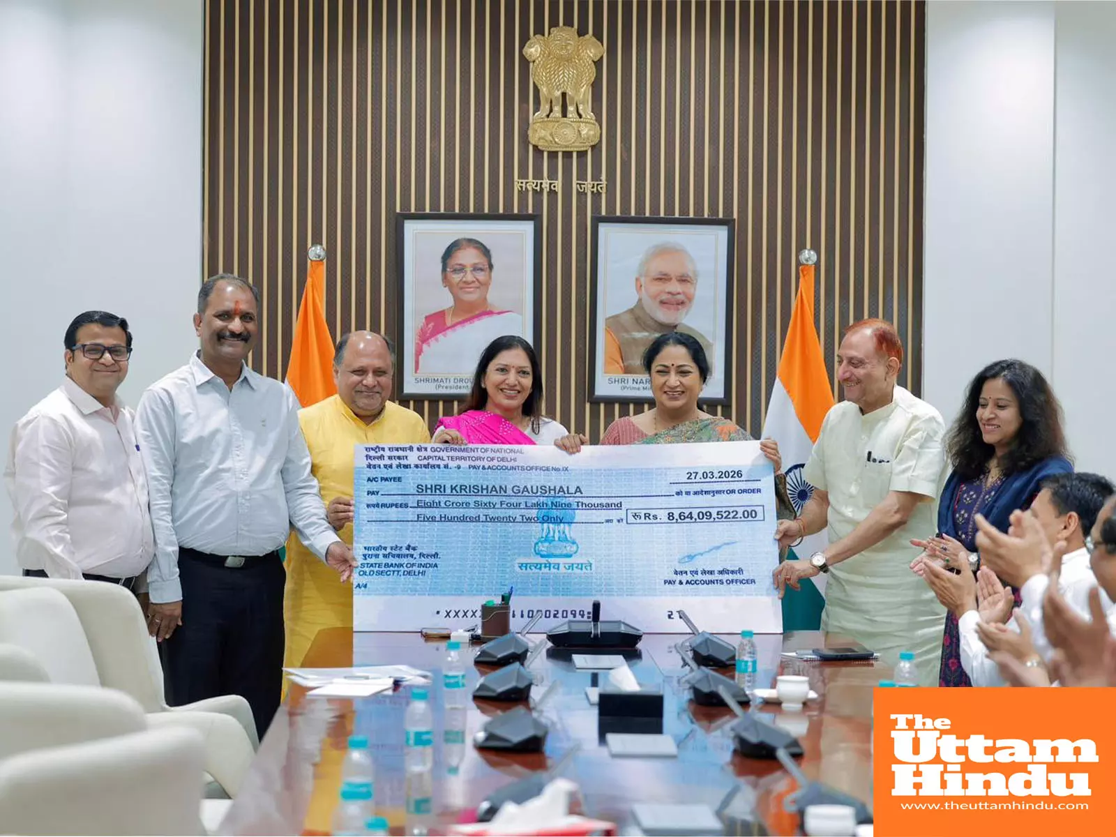 New Delhi (The Uttam Hindu): Today, at the Chief Minister's Jan Seva Sadan, reaffirming the commitment to the service and protection of the sacred cow (Gomata), certificates for lease extension agreements were presented to Delhi's gaushalas (cow shelters), and financial assistance was disbursed by Chief Minister Smt. Rekha Gupta for the establishment of biogas infrastructure.