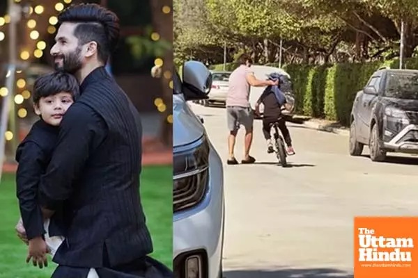 Mumbai (The Uttam Hindu): Bollywood star Shahid Kapoor spent his Saturday teaching his son Zain how to ride a cycle.