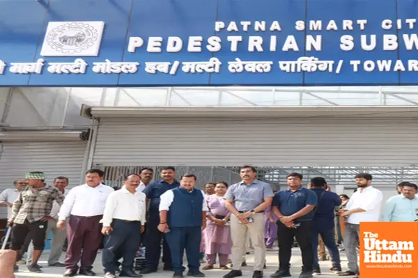 Patna (The Uttam Hindu) : Bihar's first underground pedestrian subway, currently under construction near Patna Junction, was inspected on Friday by the State Road Construction Minister Nitin Nabin. The project, being developed under the Smart City initiative, is designed to connect the Multi-Modal Hub near General Post Office, Golambar, to the eastern gate of Mahavir Temple adjacent to the Patna Junction railway station. The initiative, undertaken at the direction of Chief Minister Nitish Kumar, aims to ease congestion and traffic jams caused by vehicle parking around the Patna Junction. "This is a visionary project initiated by our Chief Minister Nitish Kumar to streamline traffic flow and enhance pedestrian convenience. It is the first of its kind in Bihar," said Minister Nabin during the inspection of the development project.