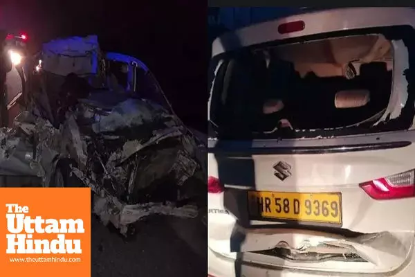 Dausa (The Uttam Hindu): A tragic road accident occurred early Tuesday morning on the Delhi–Mumbai Expressway in Rajasthan’s Dausa district. Near pillar number 193 in the Paparda police station area, a speeding car rammed into a truck from behind. Four devotees traveling in the car died on the spot, while another person was seriously injured.
