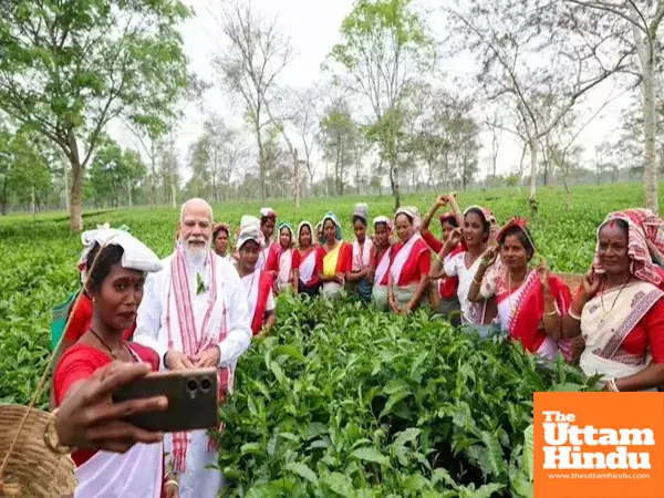 Dibrugarh (The Uttam Hindu): Amidst the hustle and bustle of the Assam Assembly elections, Prime Minister Narendra Modi surprised everyone by suddenly arriving at a tea garden in Dibrugarh. On Wednesday morning, PM Modi reached among the women workers plucking tea leaves here and had a long conversation with them. The women working there also seemed surprised and very happy with this surprise visit of the Prime Minister. During this, on the special request of the women, PM Modi also took a wonderful selfie with them, the pictures of which are now rapidly going viral on social media.
