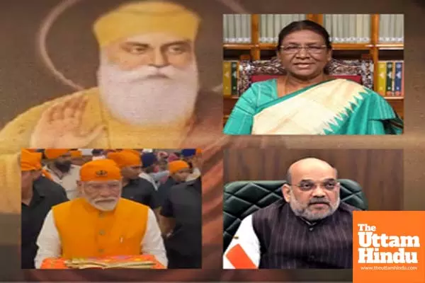 New Delhi (The Uttam Hindu): President Droupadi Murmu, Prime Minister Narendra Modi, and Union Home Minister Amit Shah on Friday conveyed their warm wishes to the nation on the 555th birth anniversary of Guru Nanak Dev also known as 'Prakash Parv,' highlighting his teachings, which continue to inspire millions worldwide with messages of truth, compassion, and service. Taking to the social media platform X, President Murmu shared a heartfelt post honouring Guru Nanak Dev's enduring legacy.