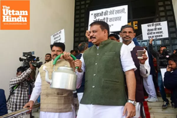 The Congress legislators led by Leader of the Opposition (LoP) Umang Singhar even reached the well of the House and staged a protest raising slogans of "Amit Shah maafi maago". The ruling benches countered Singhar, which led to an exchange of heated arguments between the legislators of the BJP and Congress. The State's Parliamentary Affairs Minister Kailash Vijayvargiya tried to control the situation, saying the House couldn't debate on this issue and urged Assembly Speaker Narendra Singh Tomar that nothing should be taken on record. In response, Congress MLAs started shouting slogans more aggressively and reached the well of the House. The members from the ruling party, who were (most of them) silent so far, stood up from their benches and assembled at the front seat (near CM's bench). Subsequently, BJP legislators, including Chief Minister Mohan Yadav and all his cabinet ministers also reached the well of the House. Nonetheless, the Congress MLAs continued their arguments and finally walked out of the House. It prompted Speaker Tomar to adjourn the House proceedings for 10 minutes. Earlier in the morning, Congress legislators arrived at the Assembly carrying tea kettles, alleging the BJP government's failure to deliver on its promise of creating two lakh jobs annually. "We have brought tea kettles to symbolise the plight of Madhya Pradesh's youth, who are being forced to open tea stalls under the BJP's governance. During the elections, the BJP promised to provide two lakh jobs every year, but it has failed to fulfil its commitment," said Leader of the Opposition (LoP) Umang Singhar.