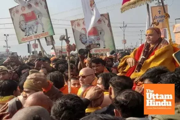 Prayagraj (The Uttam Hindu): A major controversy erupted amid tight security arrangements on the auspicious occasion of Mauni Amavasya in the Sangam city. Police stopped the convoy of Jyotirpeeth Shankaracharya Swami Avimukteshwarananda Saraswati from proceeding towards the Sangam shore, leading to a tense situation in the fair area for some time.