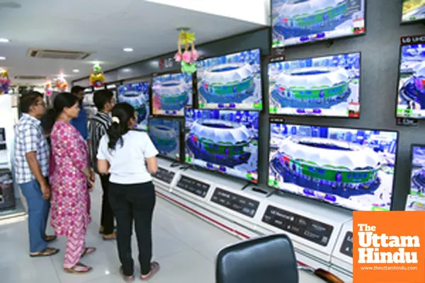 Caption : Nagpur: Cricket fans gather to watch the live telecast of the India vs Pakistan match in Nagpur on Sunday, February 23, 2025.