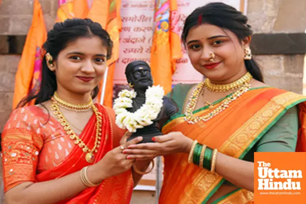 Caption : Nagpur: Girls dressed in traditional costumes pay tribute to the Chhatrapati Shivaji Maharaj on his 395th birth anniversary celebrations in Nagpur on Wednesday, February 19, 2025.